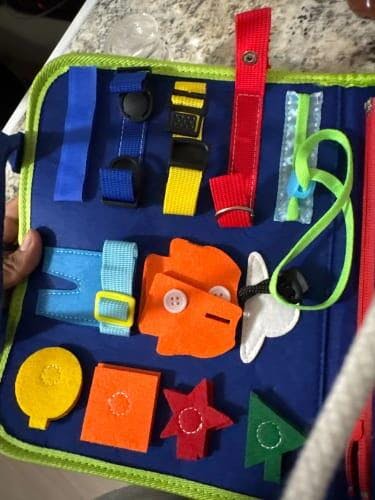 I bambini ne sono inevitabilmente attratti dalla tavola gioco di Manine_In_Azione sia per i colori che per le attività che si possono fare. Fornisce strumenti utili per le attività quotidiane e per sviluppare la psicomotricità, fondamentale per i bambini così piccoli. Decisamente ottimo prodotto e buon rapporto qualità/prezzo.